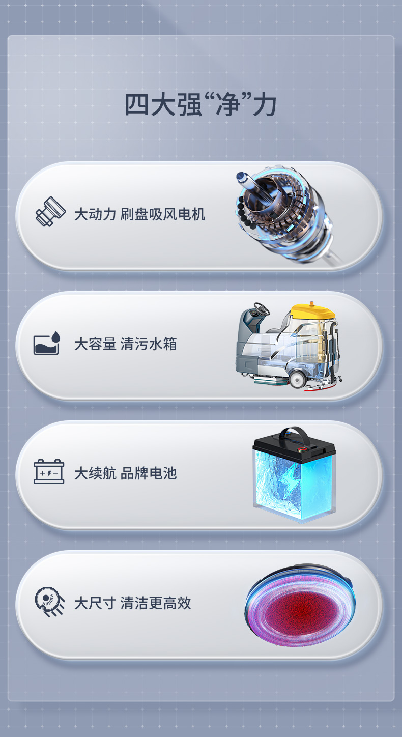 橙犀K90 駕駛式洗地機(jī):工商業(yè)全自動(dòng)洗地機(jī),大容量水箱讓你免去翻去傾倒的煩惱,更加的省時(shí)省力,同時(shí)也更加的高效,快捷清潔地面污漬。續(xù)航持久,一次充電可以使用4-5h左右,更加持久耐用。